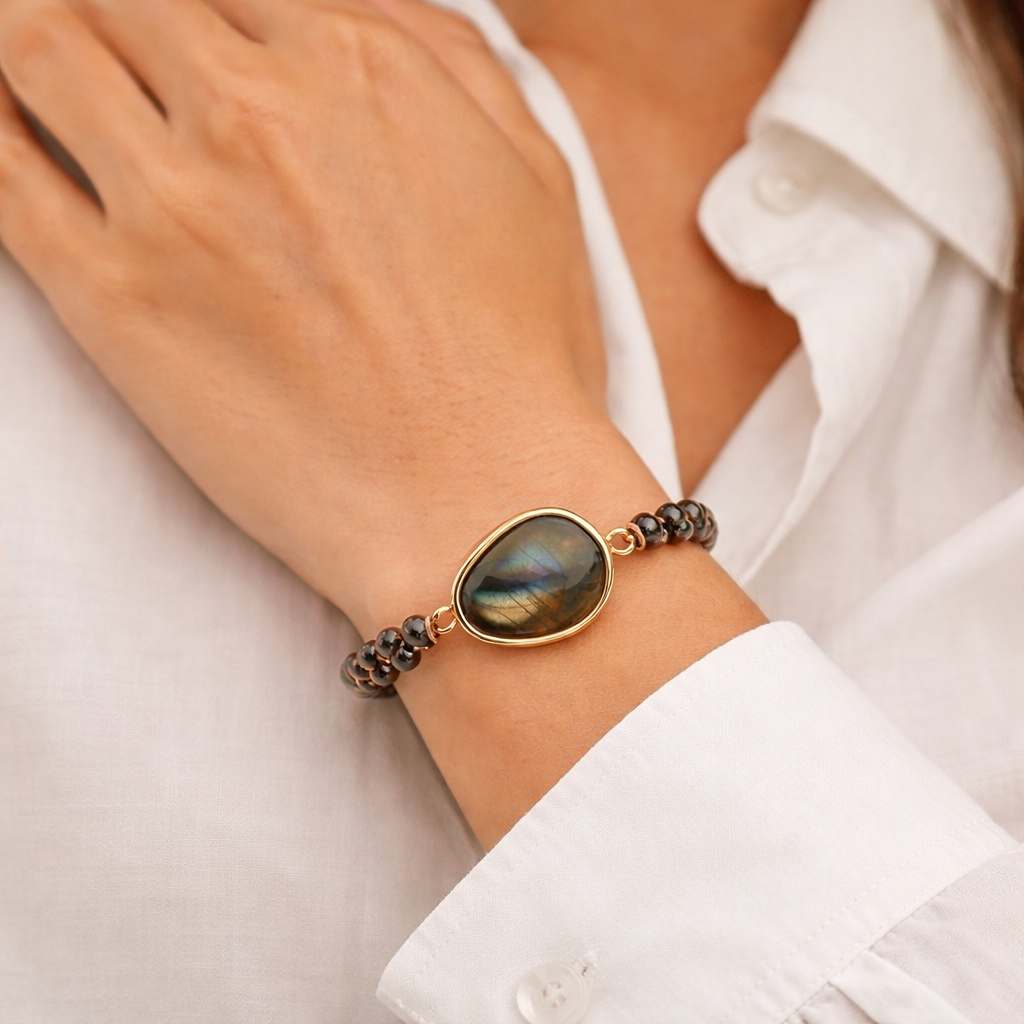 Bracelet Œil Céleste™ – Protection Énergétique en Labradorite & Hématite